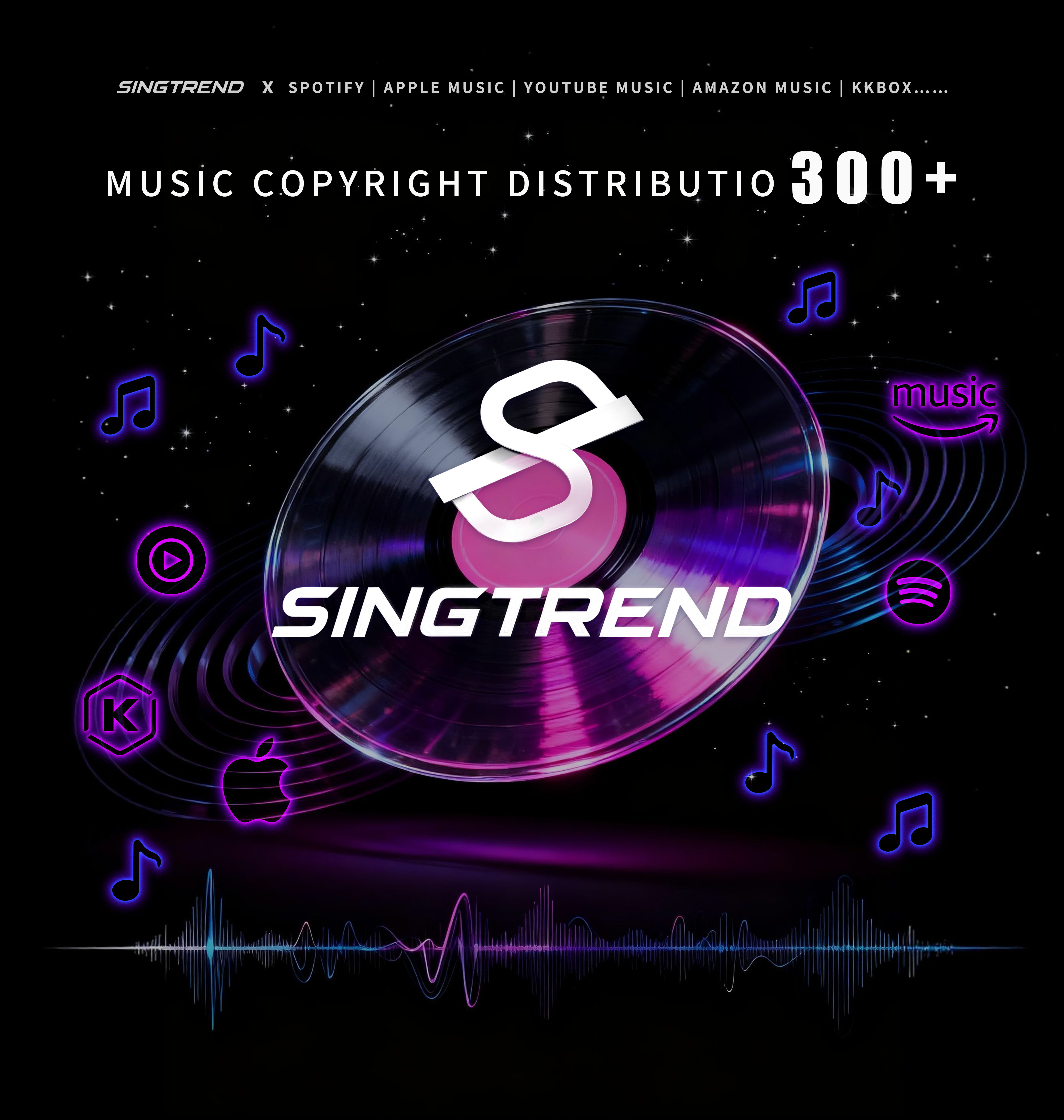Singtrend Limited has established distribution partnerships with leading global streaming platforms including Spotify, Apple Music, YouTube Music, Amazon Music, and KKBox. To date, the company has distributed over 300 tracks, supporting artists and labels in bringing their music to audiences worldwide.